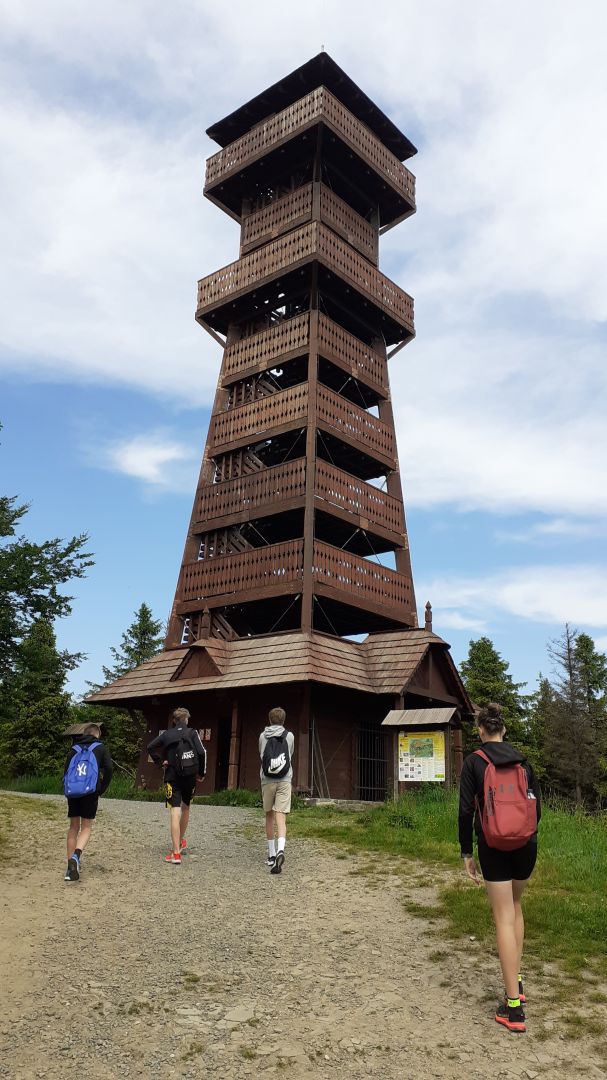 Dne 16. června 2023 někteří žáci 7. B a 8. B vyrazili na Velký Javorník. Šli jsme od školy přes Dolní Paseky až na vrchol hory, kde jsme se občerstvili v místní chatě a zašli na rozhlednu. Zpátky jsme se vydali přes naučnou stezku Beskydské nebe do Frenštátu pod Radhoštěm. Počasí bylo moc krásné, výhledy nádherné a výlet opravdu úžasný.