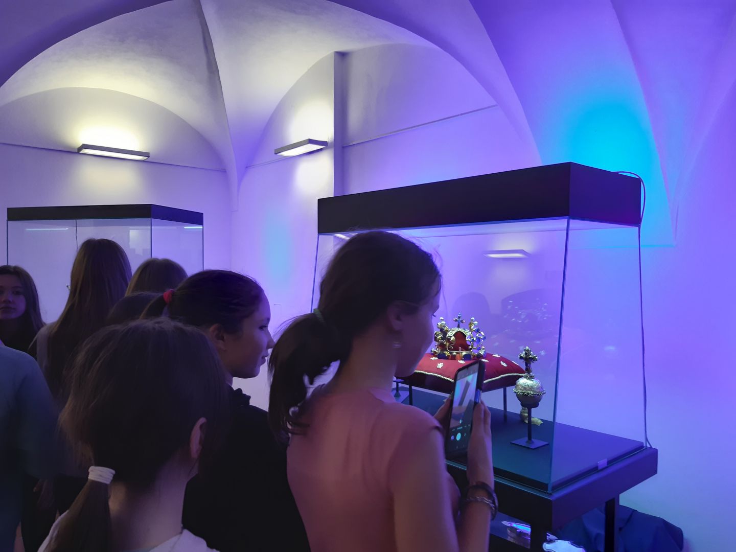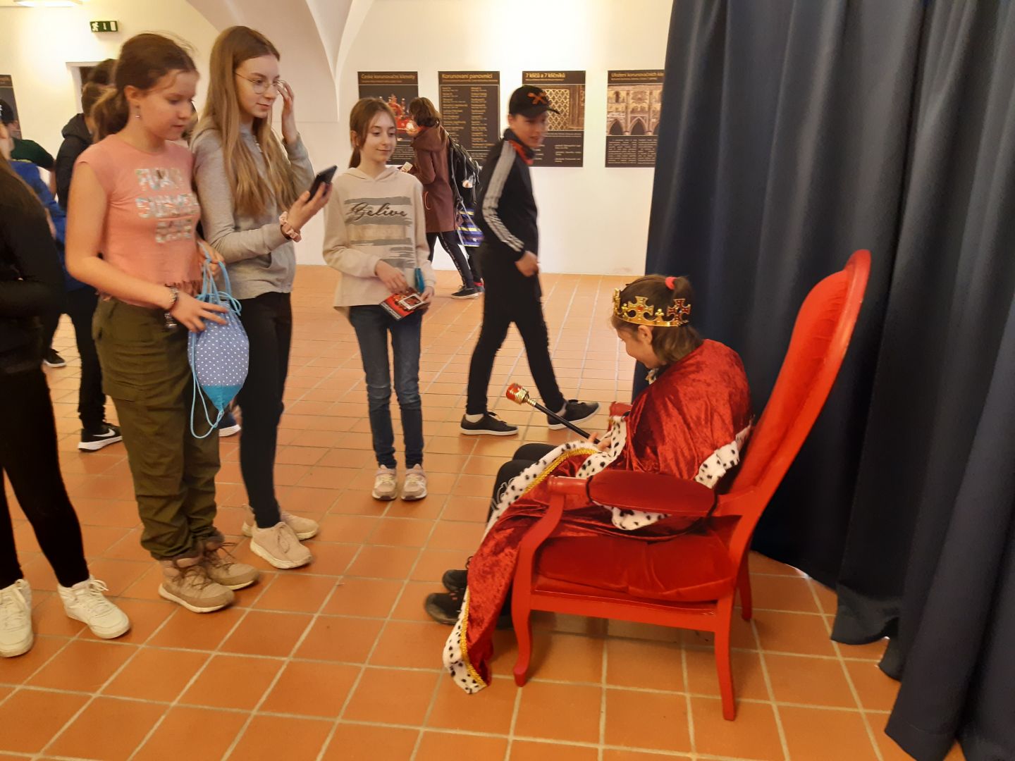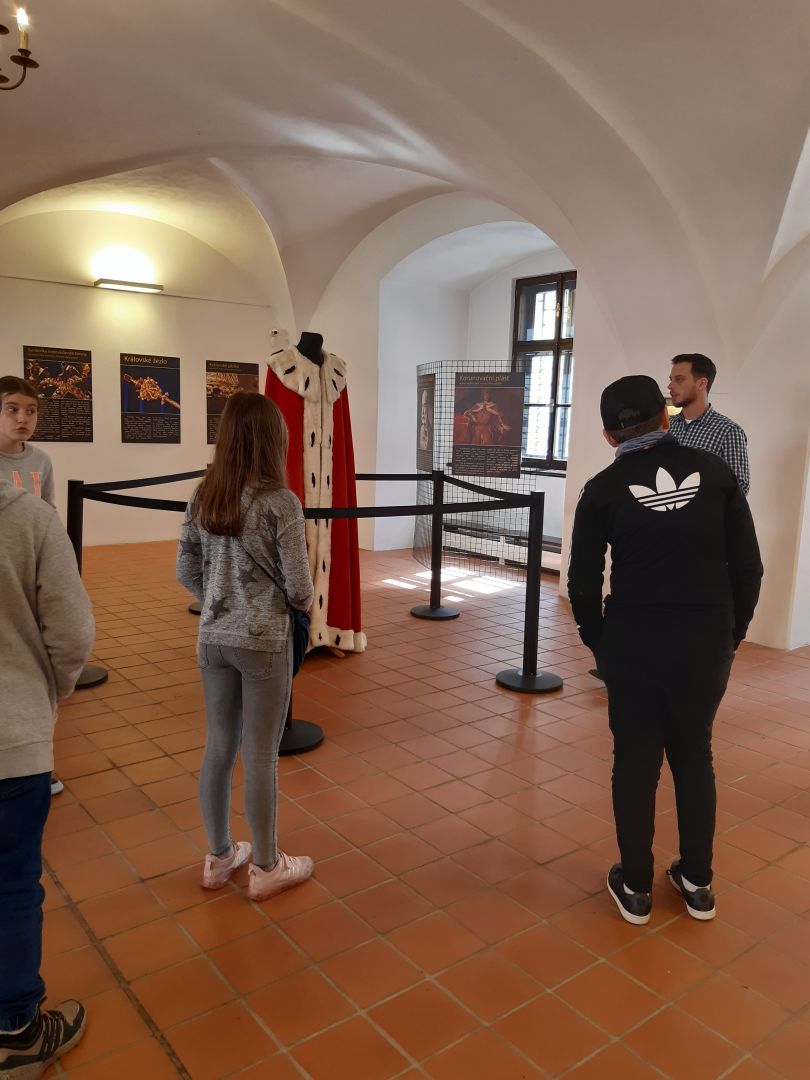 Na 18. 4. jsme si s 6.A naplánovali exkurzi do zámku Žerotínů ve Valašském Meziříčí. Lákala nás putovní výstava replik Českých korunovačních klenotů. Kromě známé Svatováclavské koruny, žezla a jablka jsme si prohlédli příklady husitských zbraní, věrnou kopii slavnostních šatů mladičké Marie Terezie, oficiální repliku Pražského Jezulátka, Řád zlatého rouna, středověké mince a listiny. Expozice byla doplněna podobiznami a informacemi o všech 22 panovnících, kteří se mohli korunou českých králů pyšnit na své hlavě. Třešničkou na dortu byl poutavý komentář našeho průvodce, historika Mgr. Jana Anlaufa. Povedené dopoledne mimo školní lavice jsme zakončili prohlídkou historického centra města.