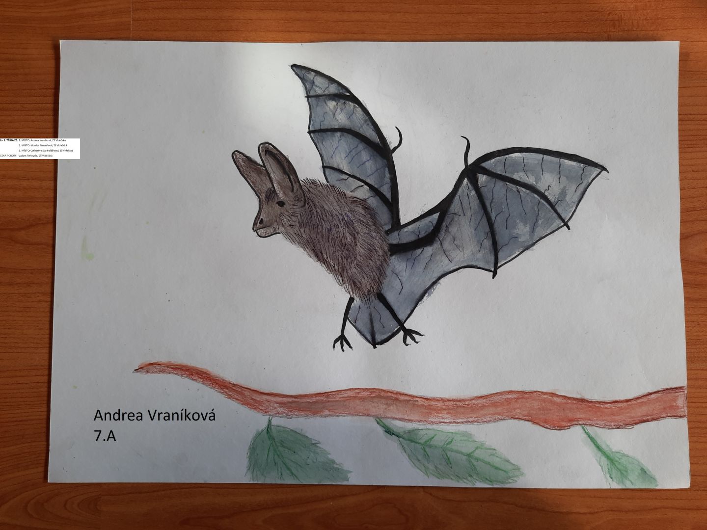 Žáci naší školy ( 7.A, 7.B ) se zúčastnili výtvarné soutěže s názvem "Můj soused netopýr". Děti vytvářely obrázky s tématikou ochrany netopýrů, jako silně a kriticky ohrožených druhů naší přírody. Soutěž byla vyhlášena neziskovou organizací ČSOP Radhošť v rámci projektu na ochranu netopýrů v našem městě Rožnově pod Radhoštěm.