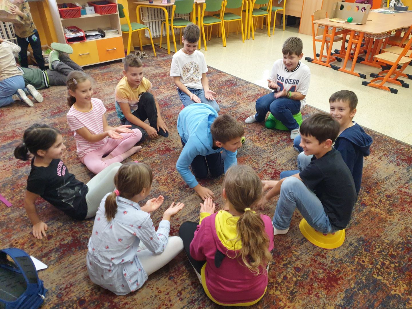 Během měsíce září se nové děti seznamovaly nejen se školní družinou, ale také se všemi ostatními prostory školy a jejím nejbližším okolím. Hned na začátku jsme si v každém oddělení stanovili pravidla, která nám pomohou udržet pozitivní a respektující prostředí. Děti měly samy možnost přispět k těmto pravidlům svými nápady, což byl důležitý krok, aby se cítily jako součást týmu.