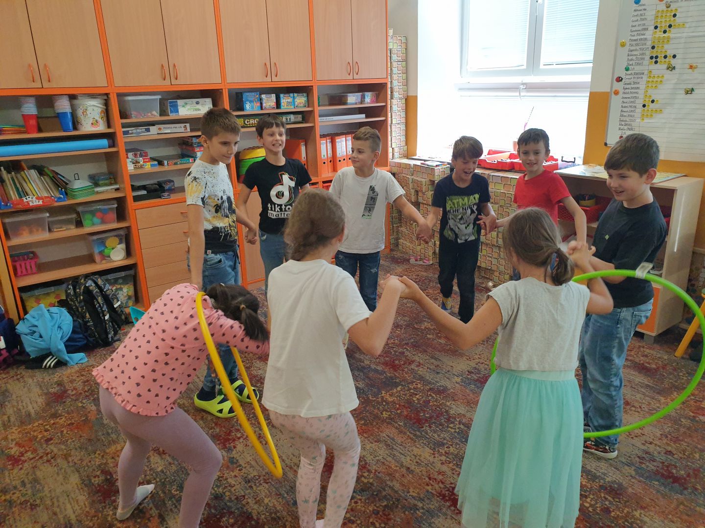 Za příznívého počasí jsme trávili hodně času venku na školním hřišti nebo nejčastěji v městském parku. I v družinových třídách si děti mohly vyzkoušet spoustu aktivit. Kromě toho, že se vzájemně poznávaly, také hrály různé hry, vyráběly, malovaly, zpívaly, poslouchaly pohádky a trávily čas se svými kamarády.